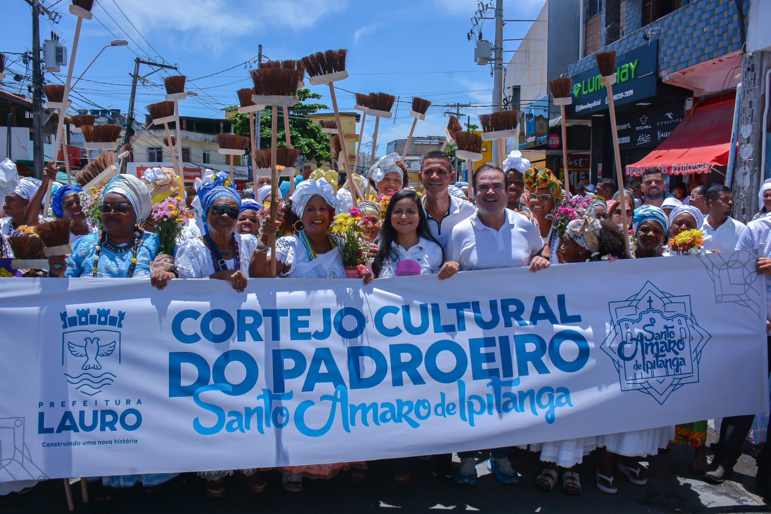 Uma mistura de manifestações culturais, fé e devoção, foi o que pode ser visto durante o Cortejo Cultural que aconteceu na manhã deste sábado (10/1), em homenagem ao padroeiro da cidade de Lauro de Freitas, Santo Amaro de Ipitanga. O evento, que percorreu ruas do Centro, atraiu uma grande quantidade de pessoas, entre elas, a prefeita do município, Débora Regis.