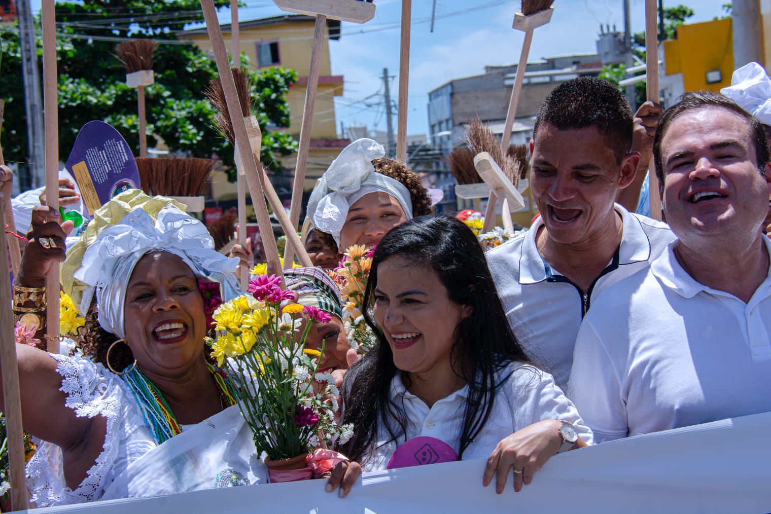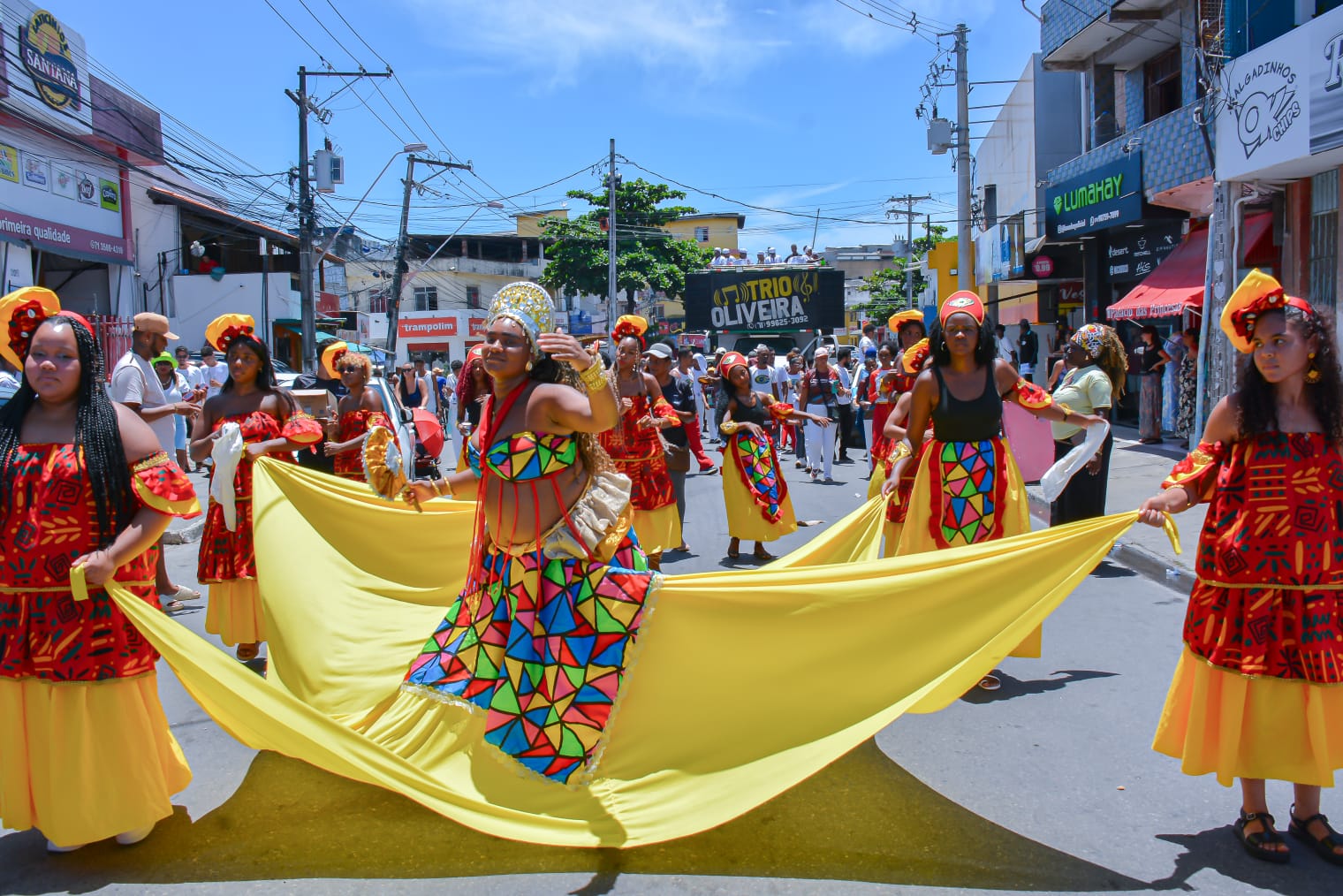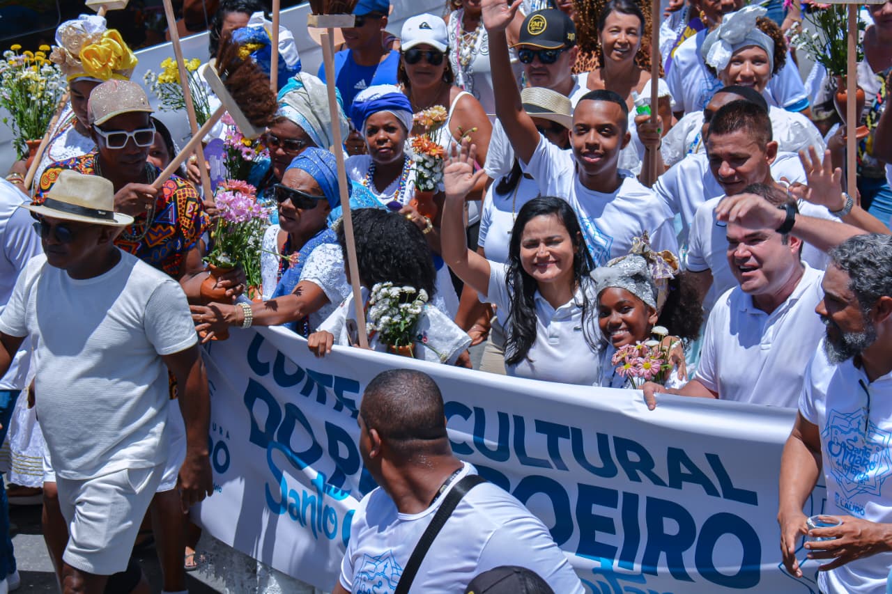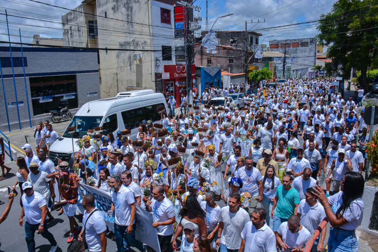 Com saída do final de linha do Centro, o cortejo realizado pela Prefeitura de Lauro de Freitas, por meio da Secretaria Municipal de Cultura, Lazer, Juventude e Esporte (SECULJE), contou com a participação de cerca de 20 grupos culturais, entre eles: capoeira, folclórico, percussão e dança, que levaram animação para quem participou da celebração.