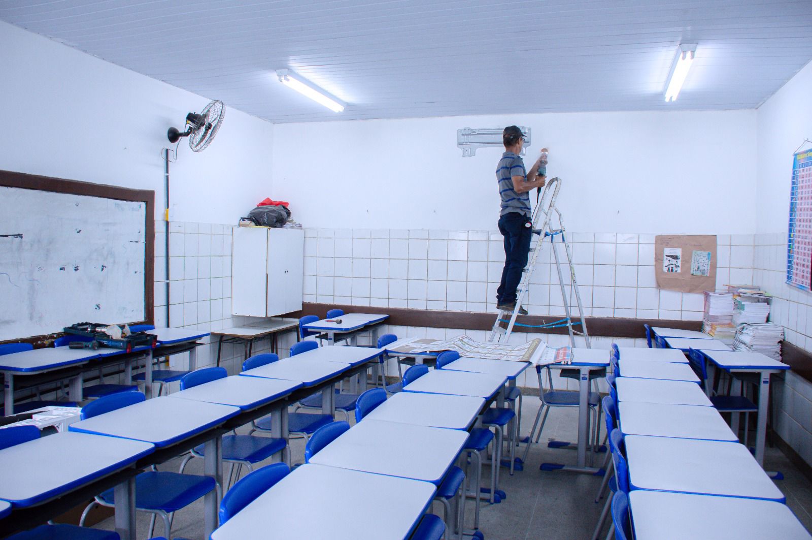 No eixo da infraestrutura, foram instalados 80 novos bebedouros e climatizadas 17 escolas, com a implantação de 244 aparelhos de ar-condicionado. Todas as unidades receberam intervenções hidráulicas, elétricas e de telhado, além de manutenção preventiva no início da gestão. Ao todo, 2.330 cadeiras universitárias foram recuperadas, assim como kits infantis de mesas e cadeiras que estavam sem uso. A renovação do mobiliário também avançou, com a aquisição de 3 mil novos itens essenciais ao funcionamento das unidades escolares. Outra conquista foi a reativação do Almoxarifado Central.
